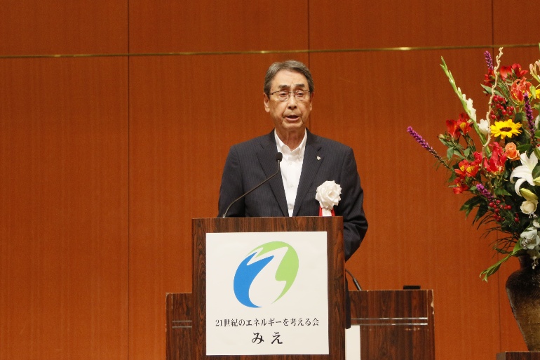 冒頭あいさつした小川会長は、本年2月に閣議決定された「第7次エネルギー基本計画」に触れ、エネルギー政策は、リスクの最小化とリターンの最大化を目指し、さまざまなエネルギー源をバランスよく活用する「ポートフォリオ理論」に基づく発想が重要、それがエネルギーの安定供給と地政学リスクの低減に繋がり、エネルギー資源の乏しい日本では、安全性を前提に「安定性」「経済性」「環境」の「S+3E」に配慮し、特定のエネルギー源に頼るのではなく、再生可能エネルギーや原子力などをバランスよく組み合わせそれぞれの特性を最大限活用したエネルギーミックスを進めていくことが重要であると述べられるとともに、県民の皆様に対して、エネルギーと環境問題について、「冷静な視点で、かつ、自らの問題として捉え、考え、行動していただく」よう呼びかけた。