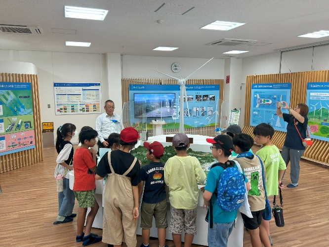 風車の動きや電気の流れについて説明を受ける